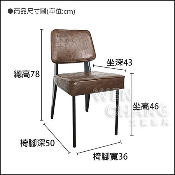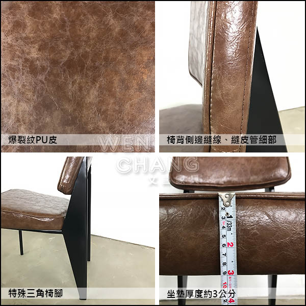 材質: 金屬鐵管烤漆椅腳 / 咖啡色爆裂紋 PU 皮 / 高密度舒適泡棉