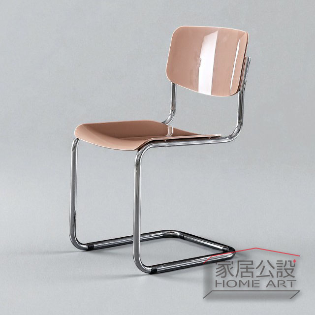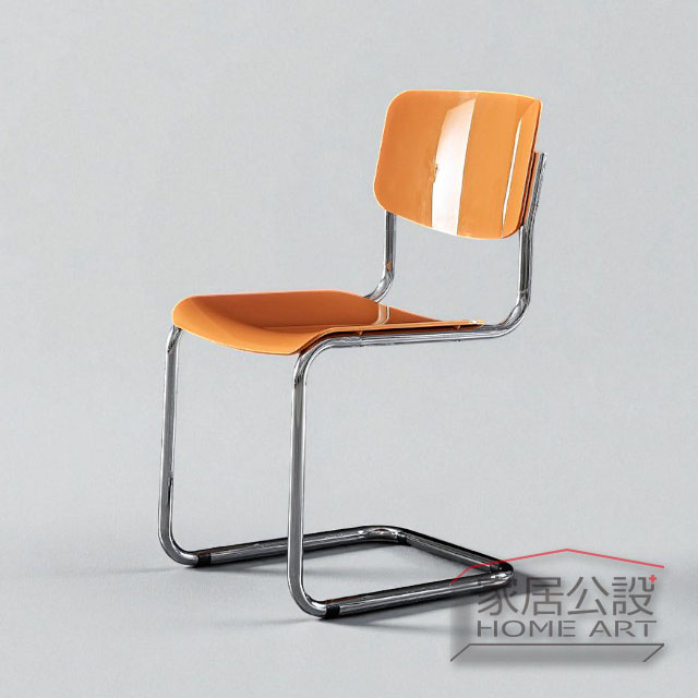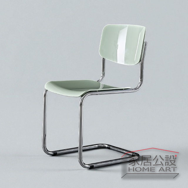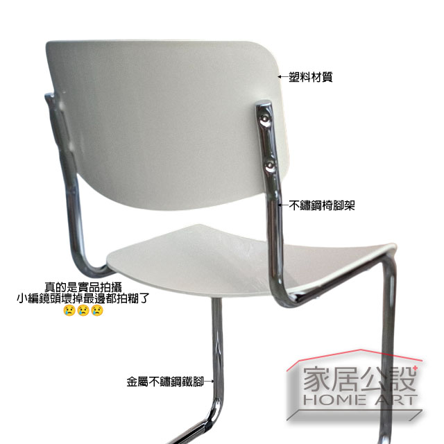 本款採 一次成型塑料椅面,表面具有輕微光澤感,不易受潮、不藏污納垢、清潔容易。搭配 不鏽鋼彎管椅腳,彈性微震感讓久坐也舒適。