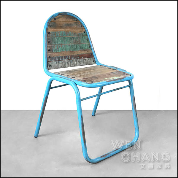 椅面與背部保有回收木原始的做舊刷色與天然木節,每一張都像一件手工家具作品。