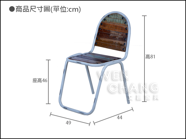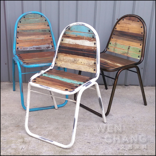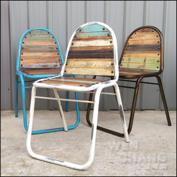 A:使用做舊回收木,每張椅子的木紋與顏色深淺都略有不同,屬於風格特色的一部分。