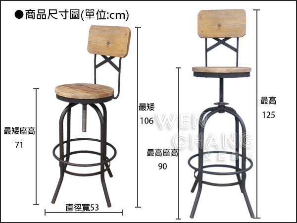 商品名稱: 【閣樓有背旋轉吧檯椅】