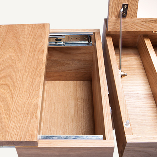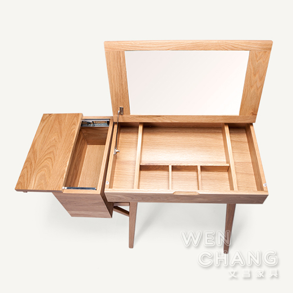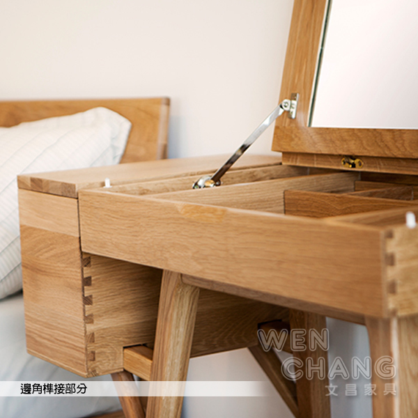 極簡外型中藏著豐富細節,這張 白橡木化妝桌 TB028 採用 100% 北美白橡木 製作,