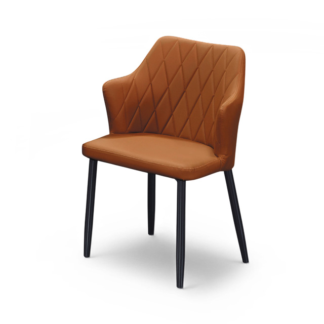 艾勒娜餐椅以「高級但不過度張揚」的美感為核心,結合菱格造型椅背、細膩皮革包覆與簡約金屬椅腳,呈現沉穩又精緻的視覺效果。