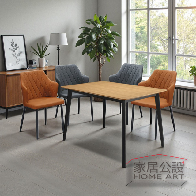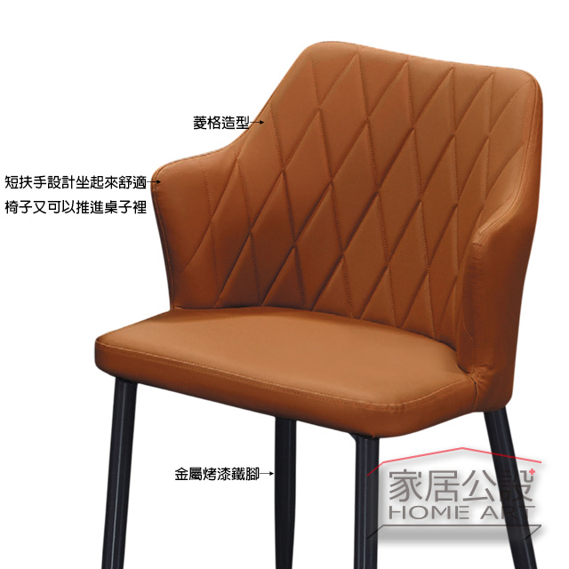 PU 皮革具備 防潑水、耐磨、好保養 的優點,非常適合台灣潮溼氣候;椅腳則採 金屬烤漆,支撐力佳、久坐不晃,輕奢風與北歐風空間都能搭配。
