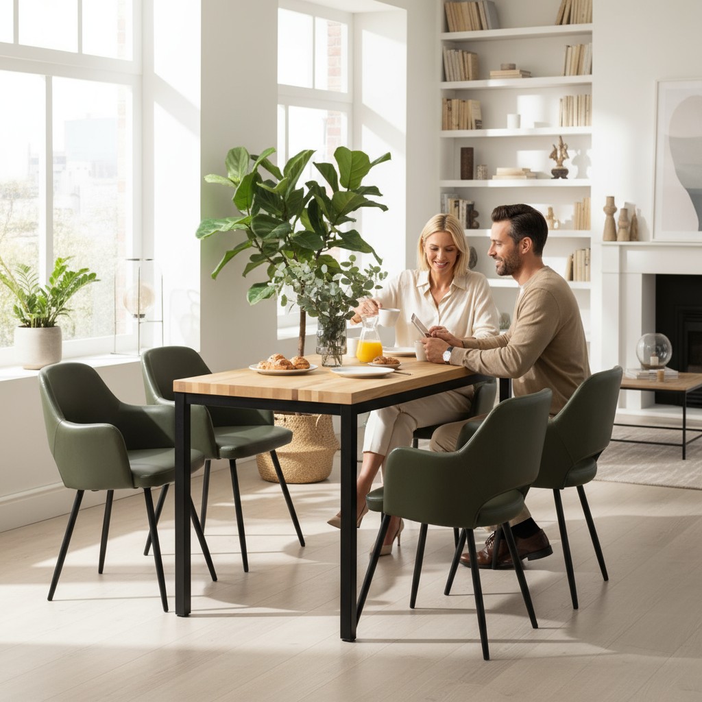 淺灰布椅 × 白橡木桌 → 北歐自然系氛圍