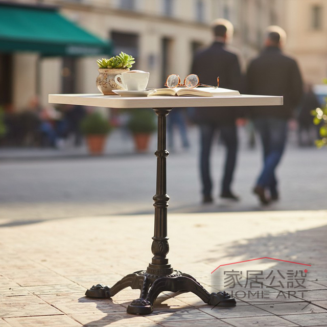 A:我們的鑄鐵桌腳表面皆有經過防鏽烤漆處理,一般室內或半戶外騎樓使用都沒問題。但若需長期放置於完全無遮蔽的戶外日曬雨淋,時間久了仍有生鏽風險,建議以室內使用為主。