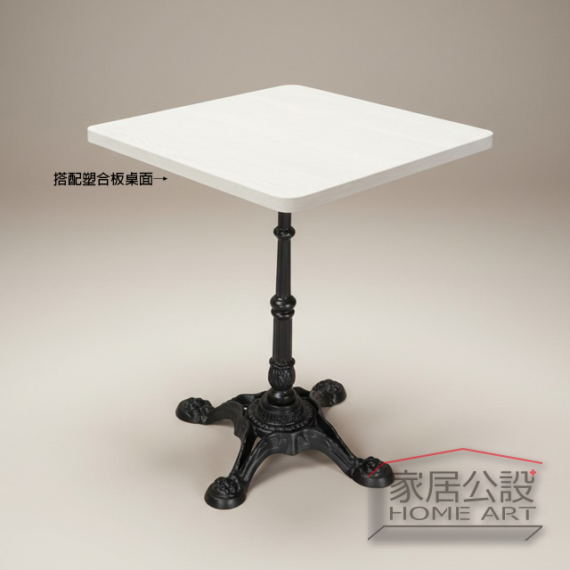 A:這款鑄鐵桌腳承重力佳,一般建議搭配 60x60cm 到 80x80cm 的圓桌或方桌最為穩固。若您的桌面尺寸較大(例如長桌),建議使用兩支桌腳來支撐喔!