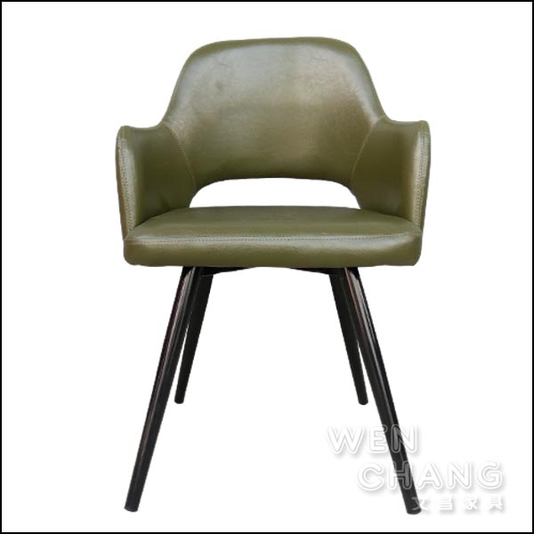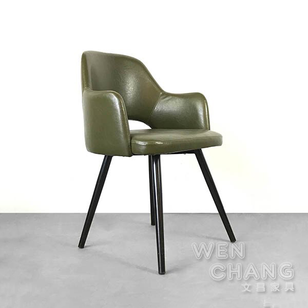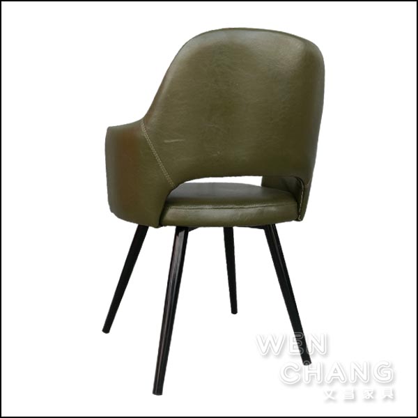 CH064 莫里斯餐椅以軍綠仿舊皮革包覆坐墊與靠背,