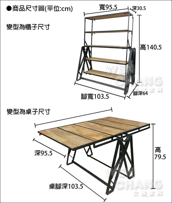 LOFT 工業風 做舊 希特 翻轉餐桌 書架 可當餐桌也可當書架 多功能家具,空間靈活運用 TB038