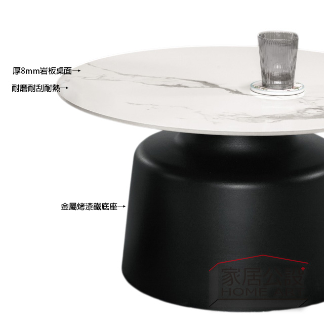 材質: 厚 8mm 耐磨岩板桌面 (大理石紋) + 金屬粉體烤漆鐵製底座