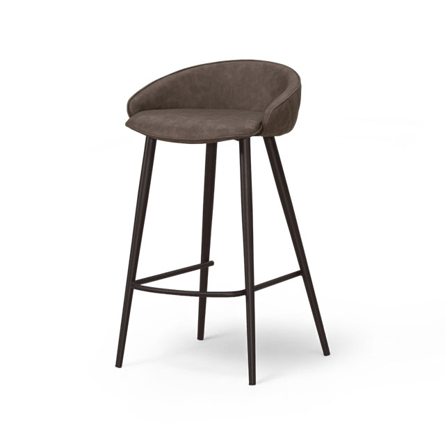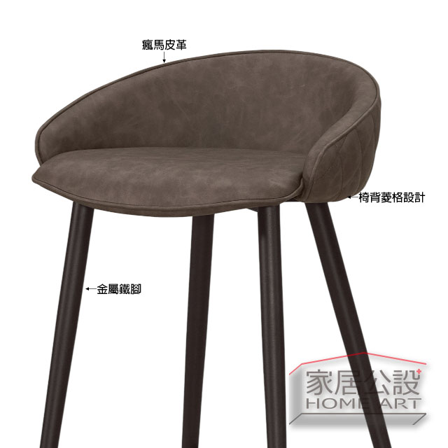 摩卡吧台椅以 瘋馬皮革質感椅面+弧形包覆椅背 帶來恰到好處的支撐,坐久也舒服。