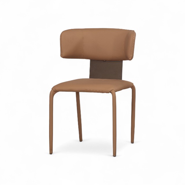 椅子的每一處細節—從金屬背板螺絲、曲面皮革拼接到椅腳比例—都透露出設計感,無論搭配木質餐桌、石材桌面或混搭風格空間都能自然融入。