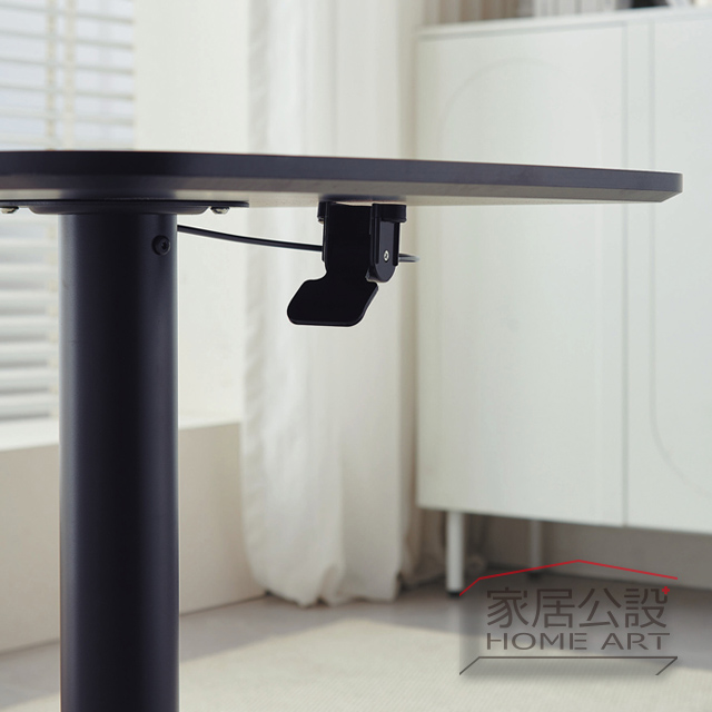 材質: MDF 密度板黑色貼皮桌面 + 金屬烤漆升降鐵腳 + 氣壓升降五金