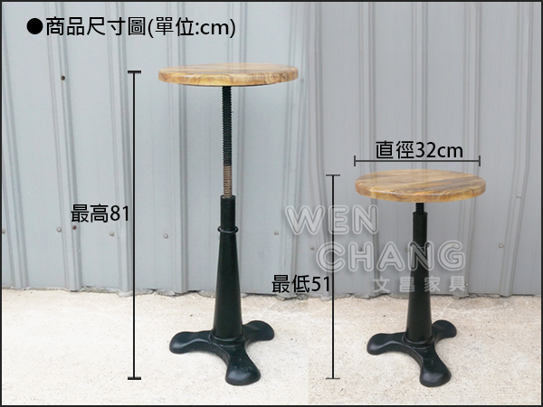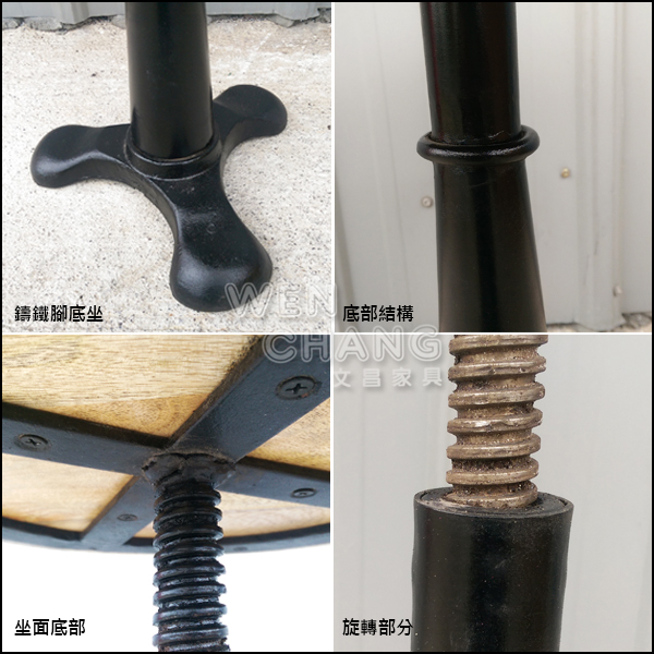 厚實穩固鑄鐵腳,搭配實木坐墊,可旋轉升降調整所需的高度。