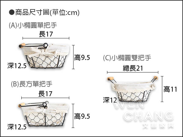 (A)小橢圓單把手 : 長17 x 高9.5 x 深12.5 cm