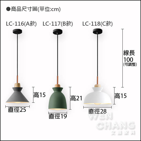 (A款LC-116) 直徑25 x 高15 x 吊線長100 cm
