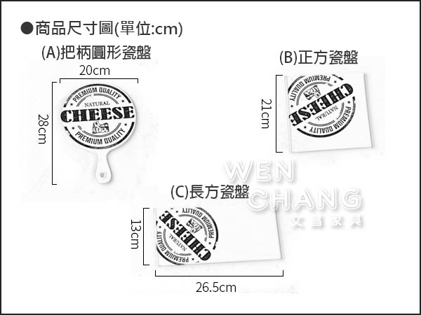 (C)長方瓷盤 : 長26.5 x 寬13 cm