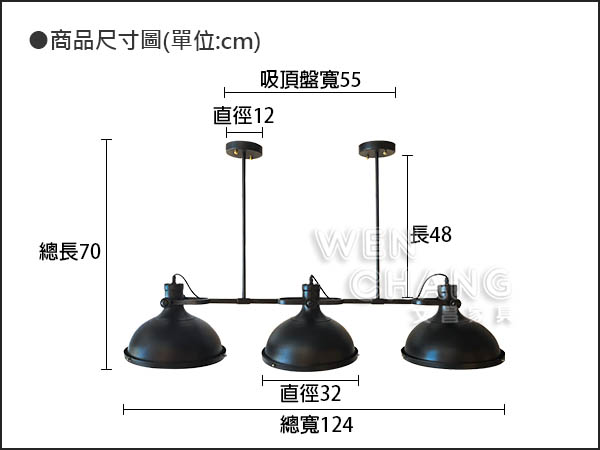 總長70 x 燈罩直徑32 x 總寬124 x 吊線長48
