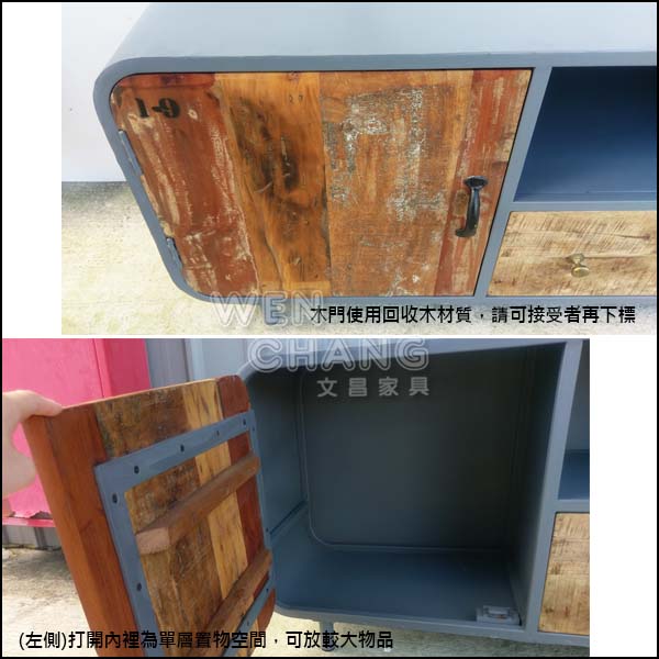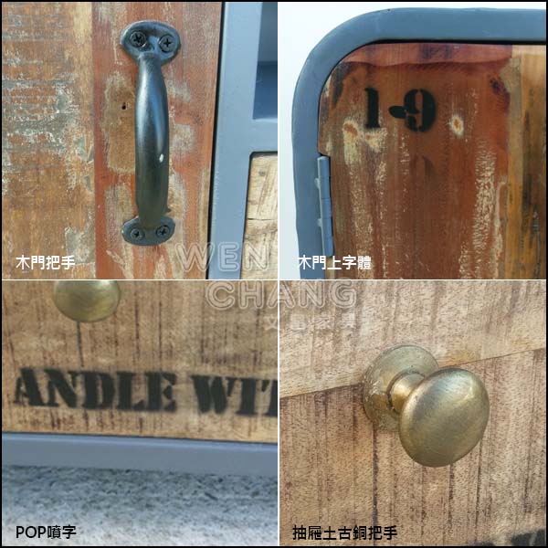 (此款有部分木材使用回收木材,每張表面都為粗糙面,並有許多木節和蟲蛀的痕跡,金屬部分皆有做舊處理,有生鏽、凹凸的痕跡,