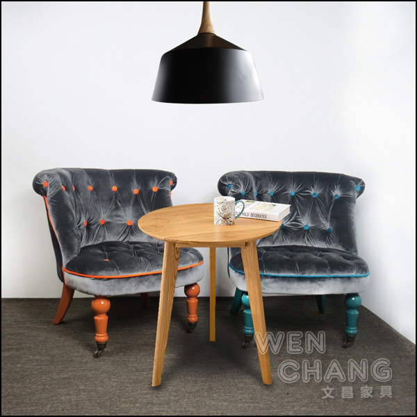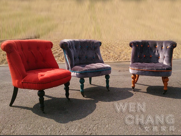 捲曲造型椅背,搭配不同顏色的滾邊拉釦,