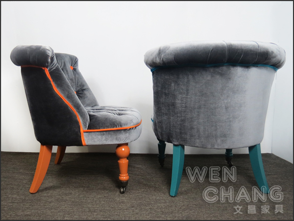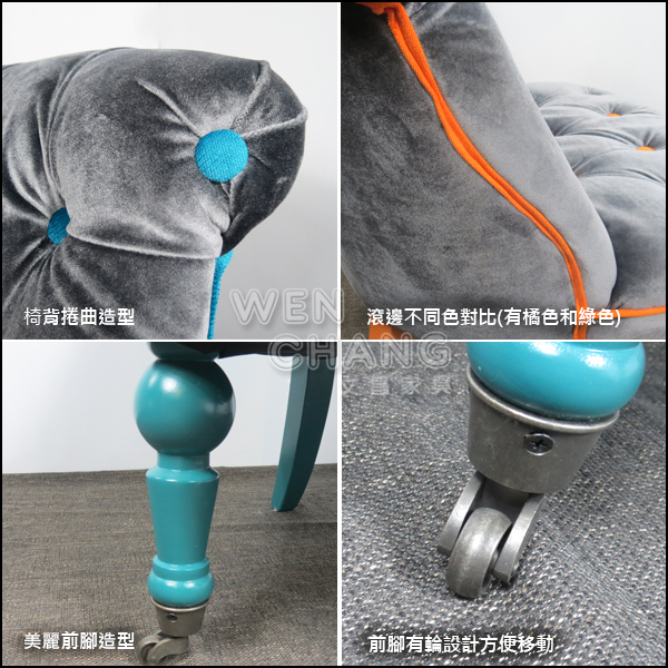 顏色:灰色絨布+綠色滾邊拉鈕椅腳 / 灰色絨布+橘色滾邊拉鈕椅腳