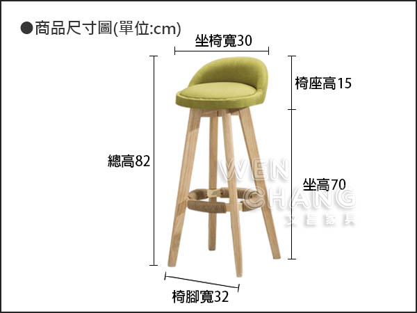 總高82 x 坐椅寬30 x 椅腳寬32 cm