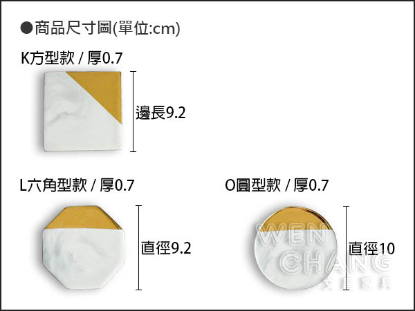 (K)方型款 : 邊長9.5 x 厚0.7 cm