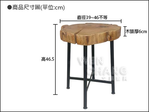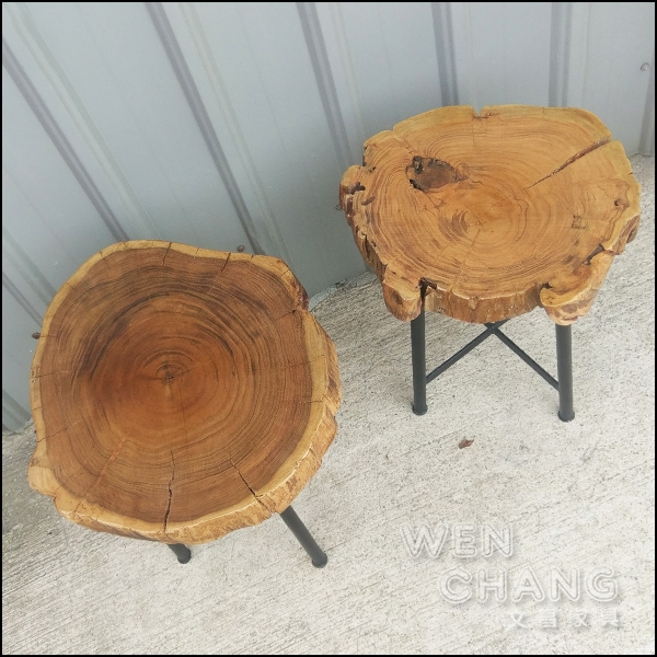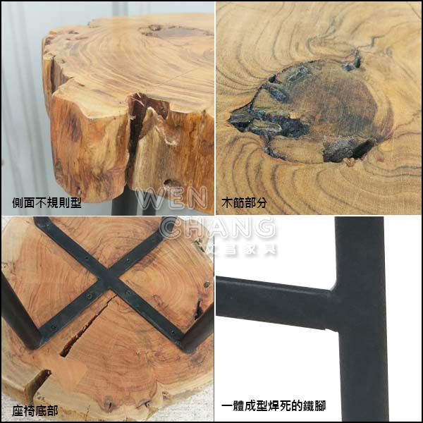 此款椅面使用整塊木頭橫切的天然木頭塊,年輪清晰可見,