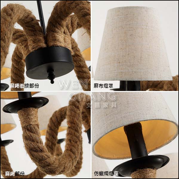 金屬 / 麻繩 光源:E14 x 6