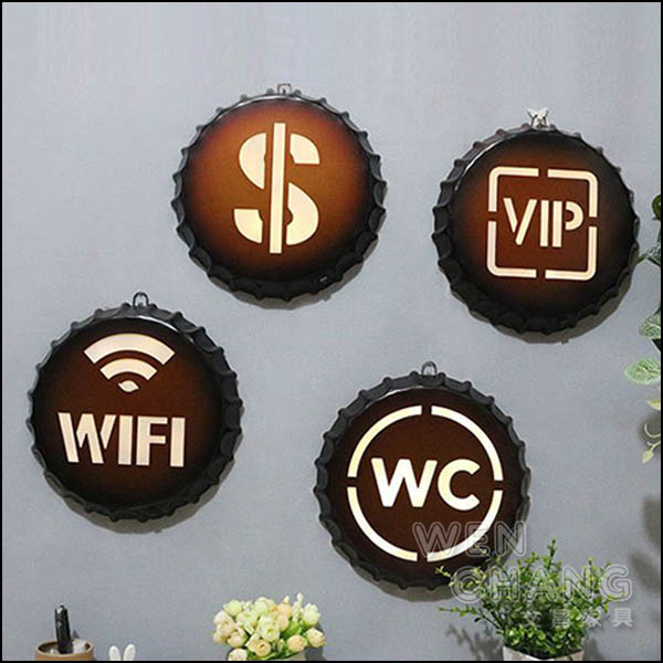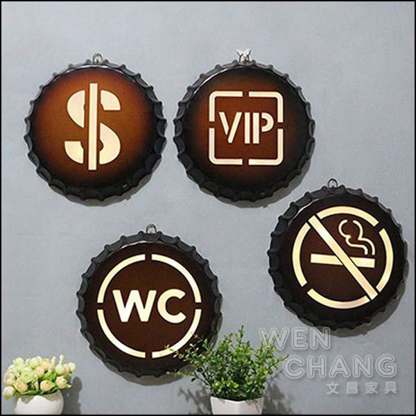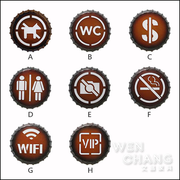 啤酒瓶蓋造型標示,有禁止寵物、廁所款...