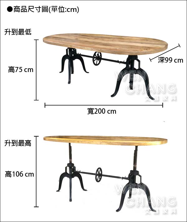 總高75~106 x 寬200 x 深99 cm