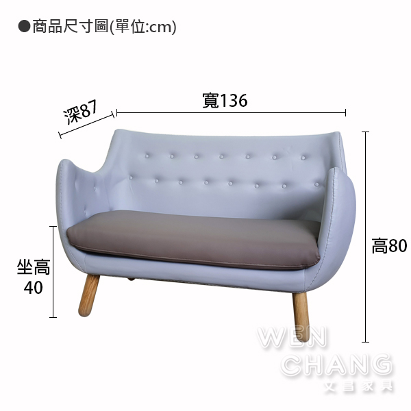 總高80 x 深87 x 寬136 x 坐高40 cm