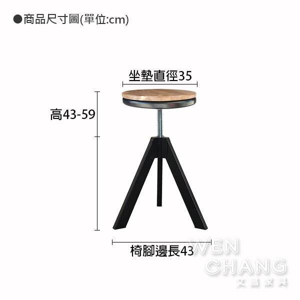 椅面直徑35 x 椅腳邊長43 x 高43-59 cm