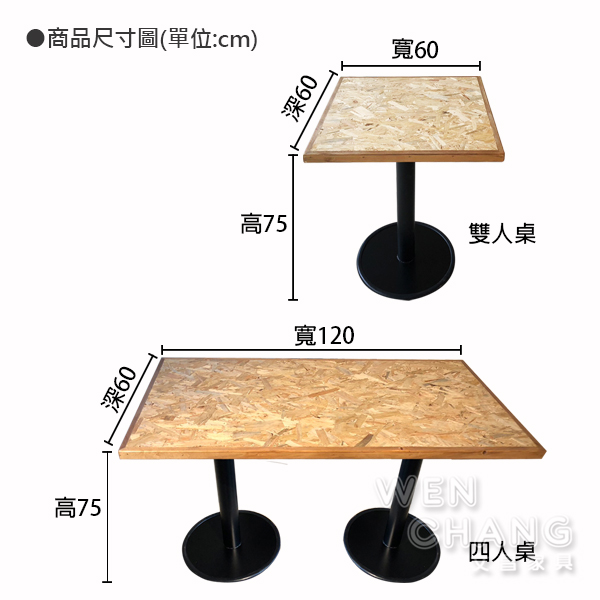 雙人桌:寬60 x 深60 x 高75 cm (可訂製尺寸)