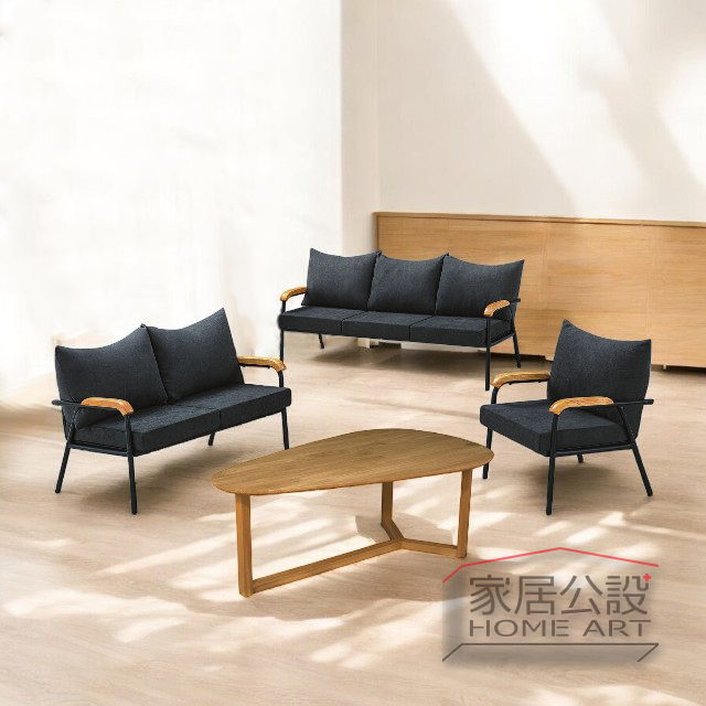 黑灰色系低調穩重,搭配木質扶手點綴溫潤層次,