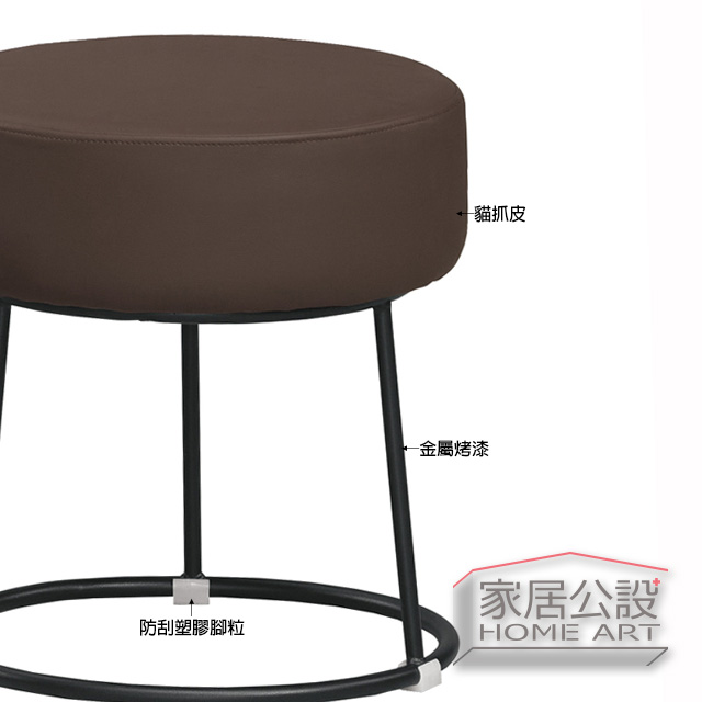 艾蜜莉防抓皮圓凳採用高質感貓抓皮革,不僅具備防潑水、抗刮特性,