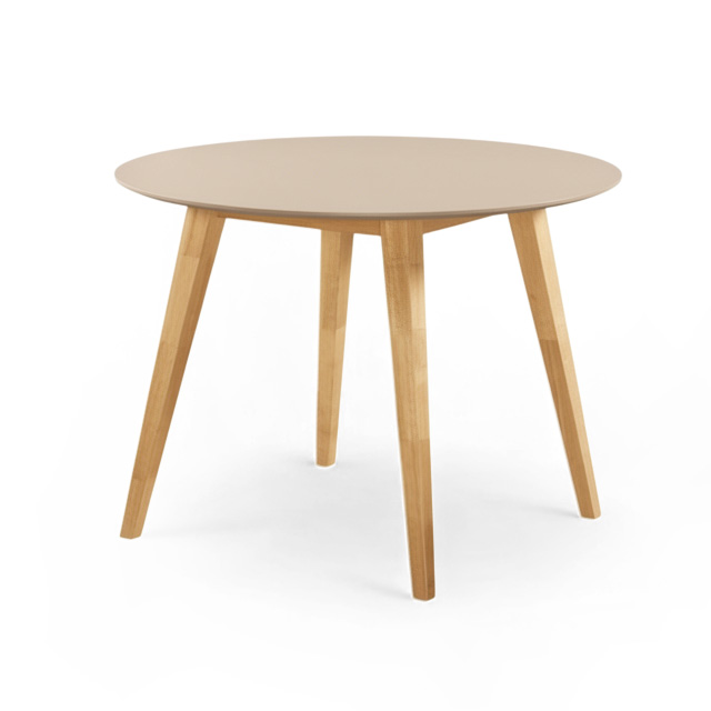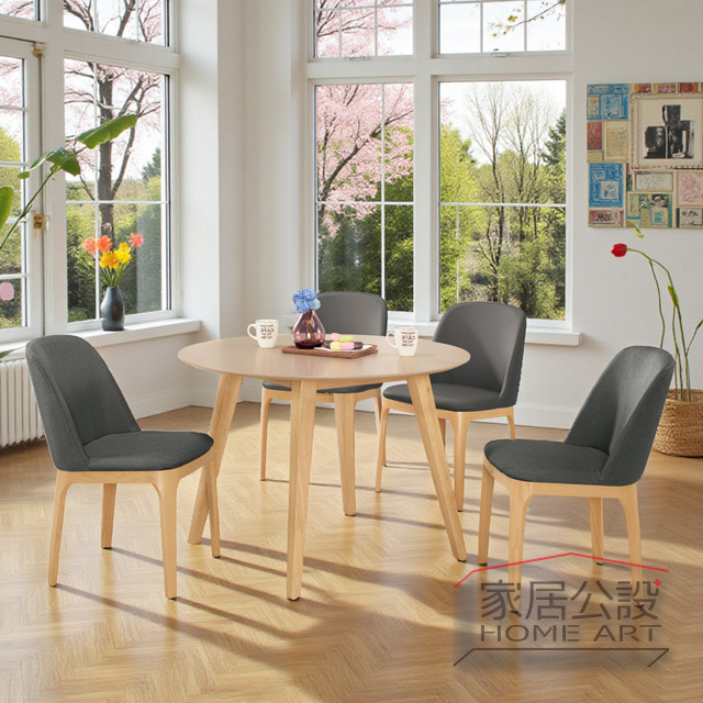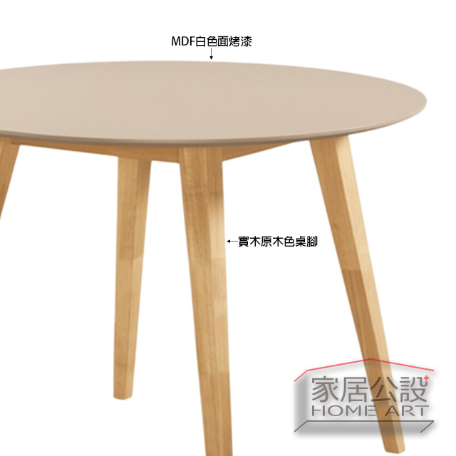 艾伯106CM大圓桌,以 白色木紋桌面搭配實木原木色腳,