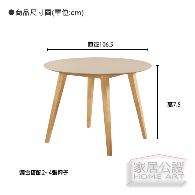 106CM直徑圓桌,適合2–4人使用,餐桌中央無邊角阻隔,讓用餐更自在。
