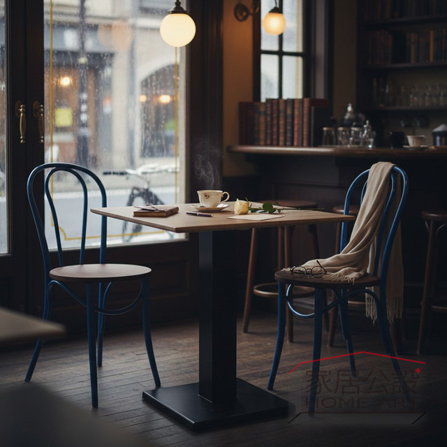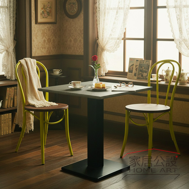 搭配溫潤的仿舊實木座墊,完美重現了昭和時期喫茶店的迷人氛圍,或是歐洲街頭Bistro的慵懶步調。