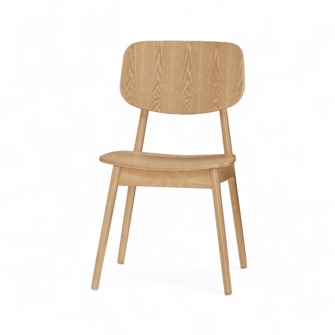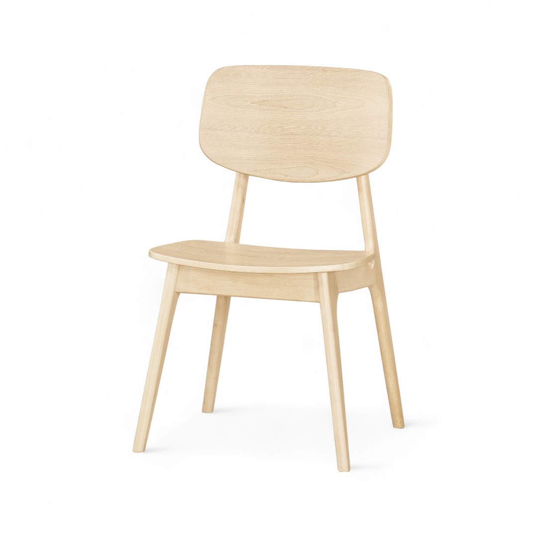 整體以 溫潤原木色系 為主,搭配圓弧靠背與微彎座面設計,
