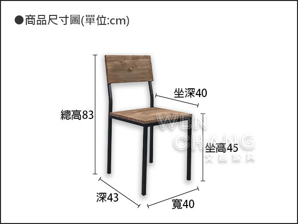 總高83 x 深43 x 寬40 x 坐高45 x 坐深40cm