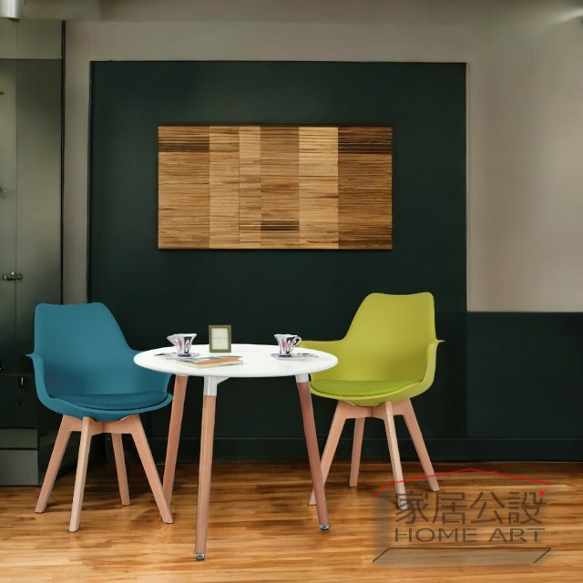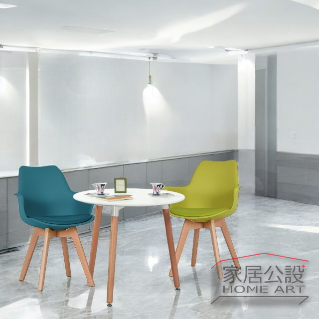 北歐極簡風格,原木椅腳搭配素色椅面,