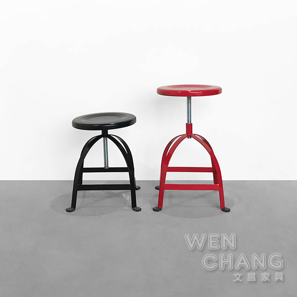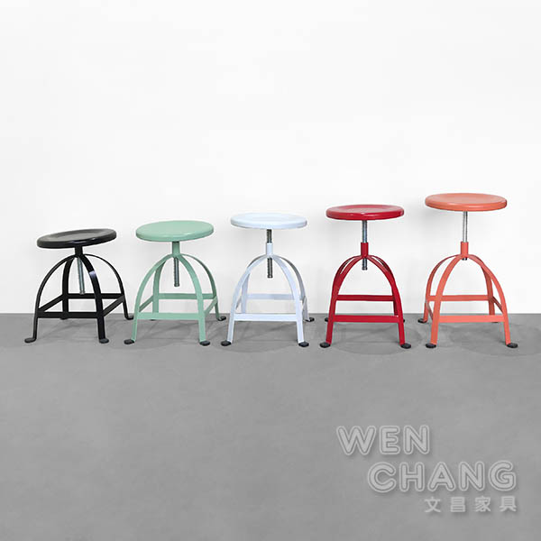 保留了工業圓凳的復古造型 增添現代大膽的繽紛色彩,