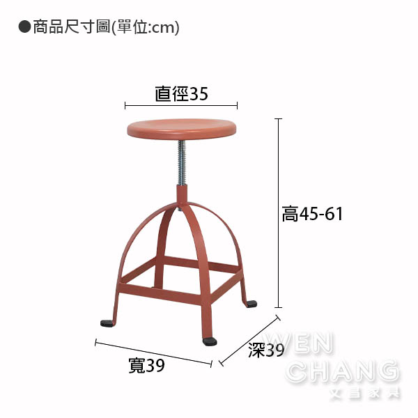 椅面直徑35 x 椅腳邊長39 x 高45-61 cm