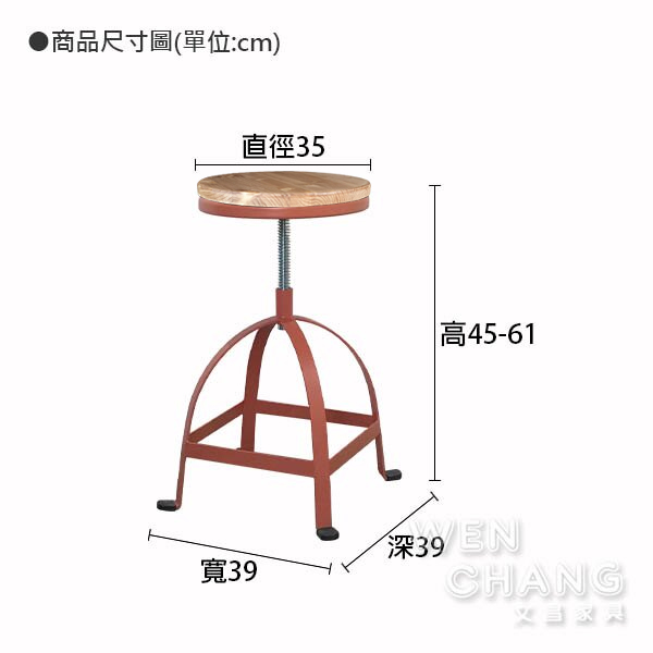 椅面直徑35 x 椅腳邊長39 x 高45-61 cm