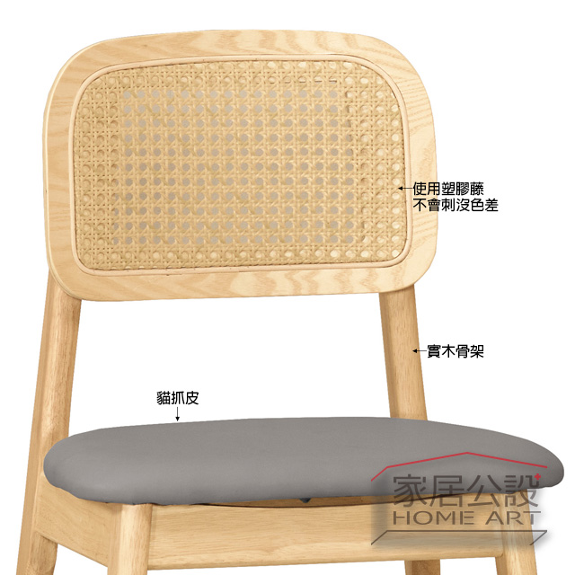 材質:實木 + 藤編 + 貓抓皮軟墊