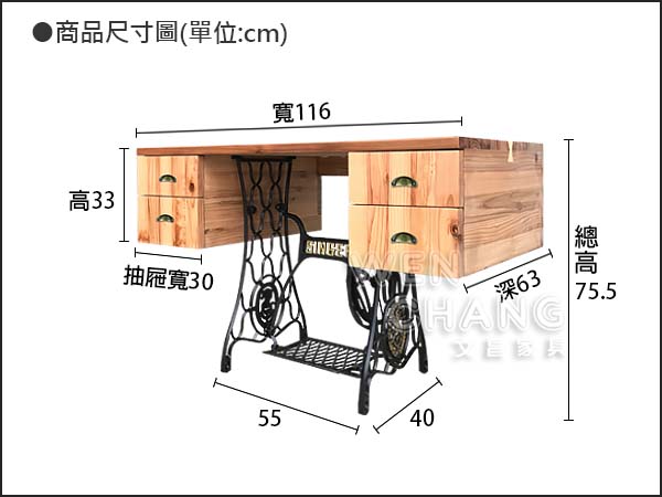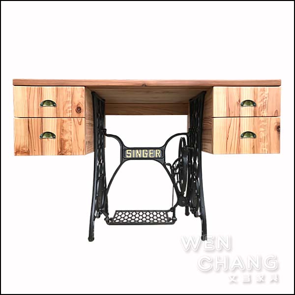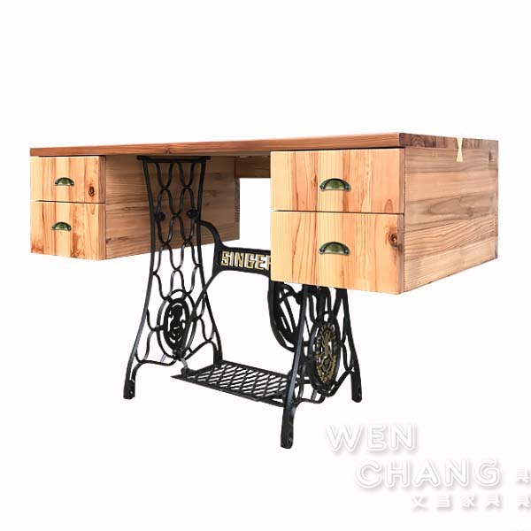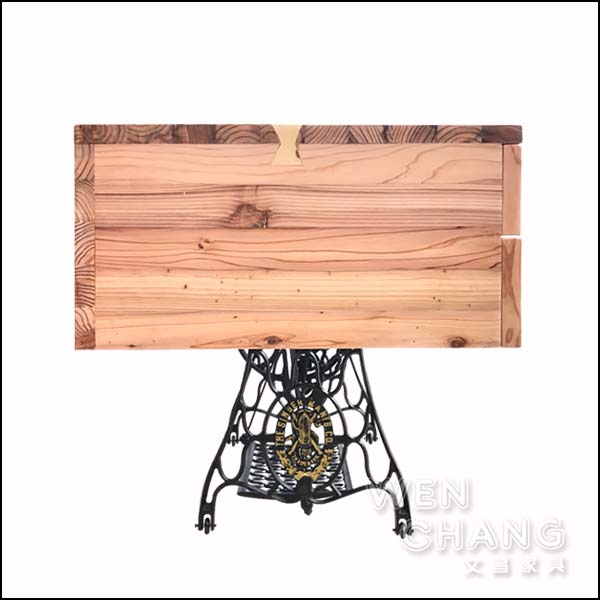 復古歐風雕花裁縫機腳,典雅優美,搭配香杉木桌面,別具特色。